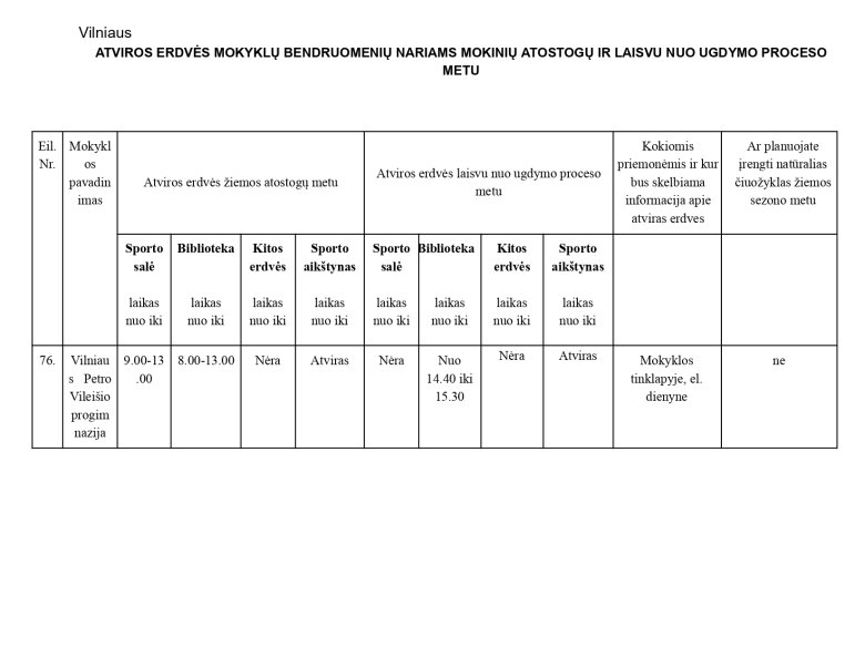 Atviros erdvės mokyklų bendruomenių nariams mokinių atostogų ir laisvu nuo ugdymo proceso metu